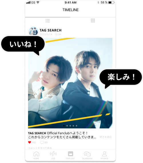 ワンマンライブ、イベント、ファンミーティングなどのチケットを、ファンクラブ先行でいち早くお申し込みいただけます。